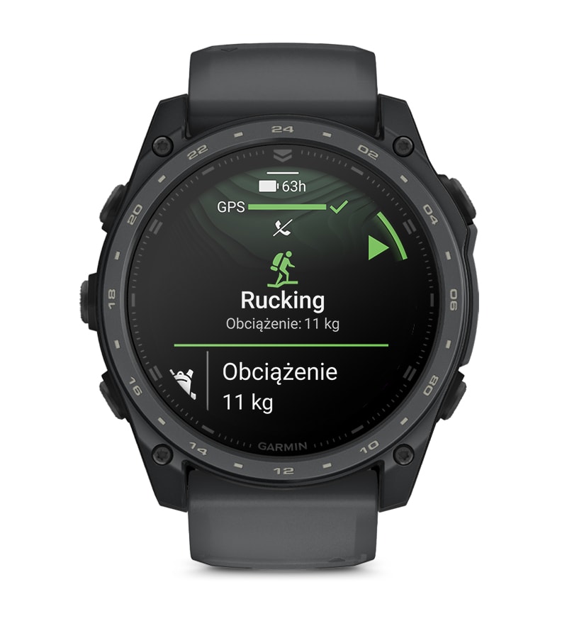 Zegarek oferuje m.in. tryb ukrycia, Jumpmaster, projekcję punktów trasy, dwupozycyjny zapis GPS, wyłącznik awaryjny oraz dedykowaną aktywność rucking z możliwością wprowadzenia wagi plecaka.